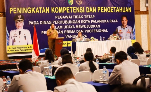 PALANGKA RAYA, BORNEO 7.COM – Dinas Perhubungan Kota Palangka Raya menggelar kegiatan Peningkatan Kompetensi dan Pengetahuan Pegawai Tidak Tetap (PTT) pada Dishub Kota Palangka Raya. Kegiatan yang berlangsung di Ballroom Aurila Hotel Palangka Raya ini dibuka oleh Pj Wali Kota Palangka Raya melalui Plt Asisten Administrasi Umum Setda Kota Palangka Raya, Dedi Purwantoro, Senin (04/11/2024).