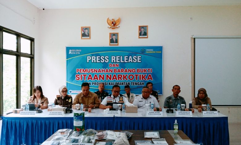 PALANGKA RAYA, BORNEO7.COM – Badan Narkotika Nasional Provinsi (BNNP) Kalimantan Tengah menggelar konferensi pers pengungkapan sejumlah kasus Narkotika, pada bulan April hingga Mei 2025. Acara berlangsung di Aula Gedung Rehabilitasi BNNP Kalteng, Kota Palangka Raya, Selasa, (27/5/202) pagi.
