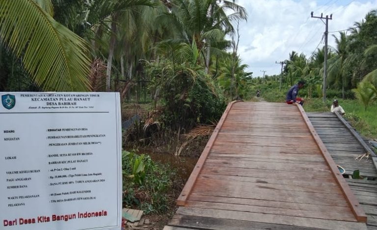 KOTIM, BORNEO7.COM – Pemerintah Desa Babirah, Kecamatan Pulau Hanaut, Kabupaten Kotawaringin Timur, Kalimantan Tengah, membangun jembatan yang berfungsi sebagai penghubung warga masyarakat antar RT/RW di wilayah desanya.
