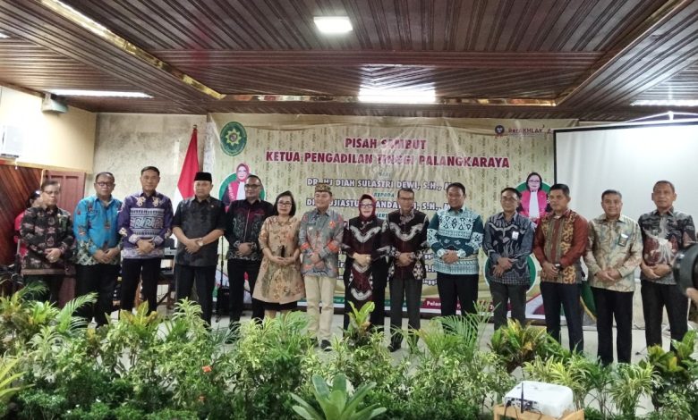 PALANGKA RAYA, BORNEO7.COM – Ketua Pengadilan Tinggi Palangka Raya resmi berganti, Hj. Diah Sulastri Dewi sebagai pejabat lama menyerahkan tongkat estafet kepemimpinan kepada pejabat baru Pujiastuti Handayani. Acara pisah sambut berlangsung di Ruang Sidang Prof. H. M. Syarifuddin, Pengadilan Tinggi Palangka Raya, Jumat (13/6/2025) siang.