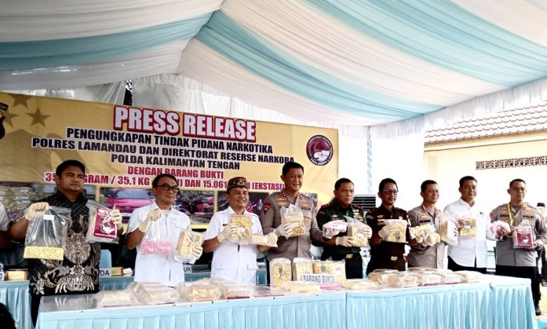 PALANGKA RAYA, BORNEO7.COM – Kepolisian Daerah Kalimantan Tengah (Polda Kalteng) bersama Polres Lamandau dan Direktorat Reserse Narkoba berhasil menggagalkan upaya peredaran narkotika berskala besar yang melintasi jalur darat antarprovinsi. Dalam pengungkapan tersebut, petugas berhasil menyita total 35,1 Kilogram Sabu dan 15.061 Butir Pil Ekstasi.