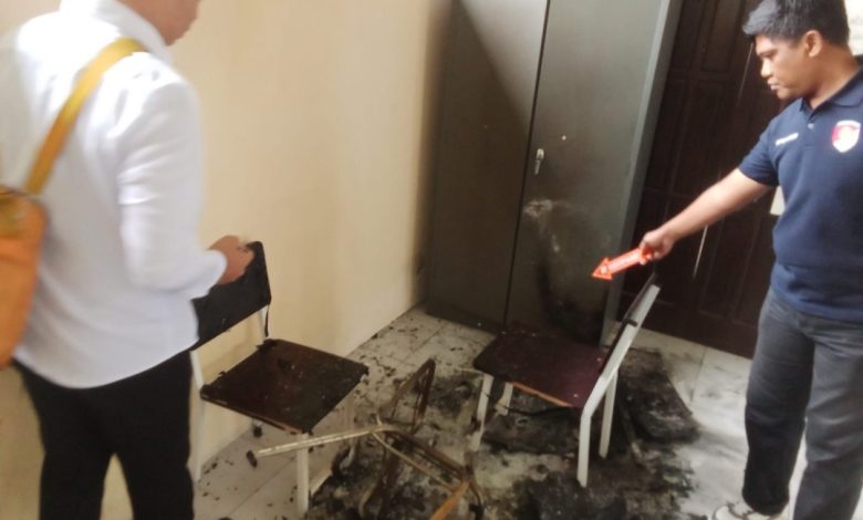 “Petugas segera melakukan olah TKP, meminta keterangan para saksi, serta mengamankan sejumlah barang bukti berupa meja dan kursi bekas terbakar.