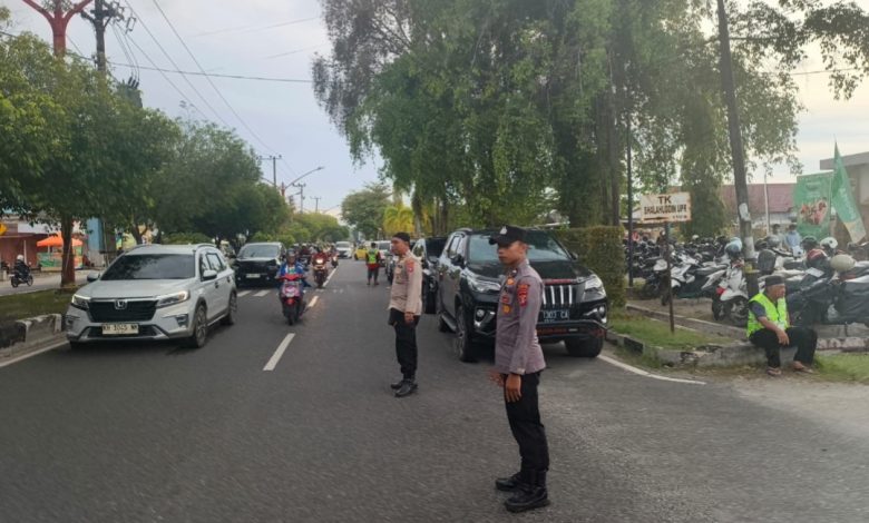 Sembari Laksanakan Pam, Polresta Palangka Raya Atur Arus Lalin sekitar Pasar Ramadhan