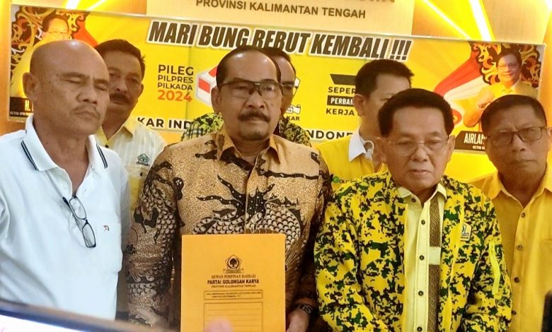 Ketua DPD Partai Golkar Provinsi Kalimantan Tengah (Kalteng) H.M Ruslan, menerima langsung berkas bakal calon wakil gubernur yang diserahkannya di kantor DPD Golkar Kalteng, Selasa (21/05/2024).